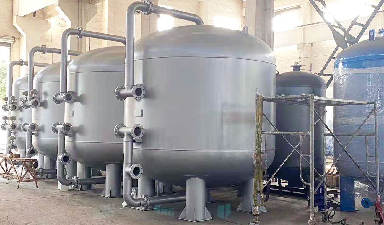 活性炭過濾器是利用(yòng)顆粒活性炭進一步去除機械過濾器出水中(zhōng)的殘存的餘氯、有(yǒu)機物(wù)、懸浮物(wù)的雜質(zhì),為(wèi)後續的反滲透處理(lǐ)提供良好條件。